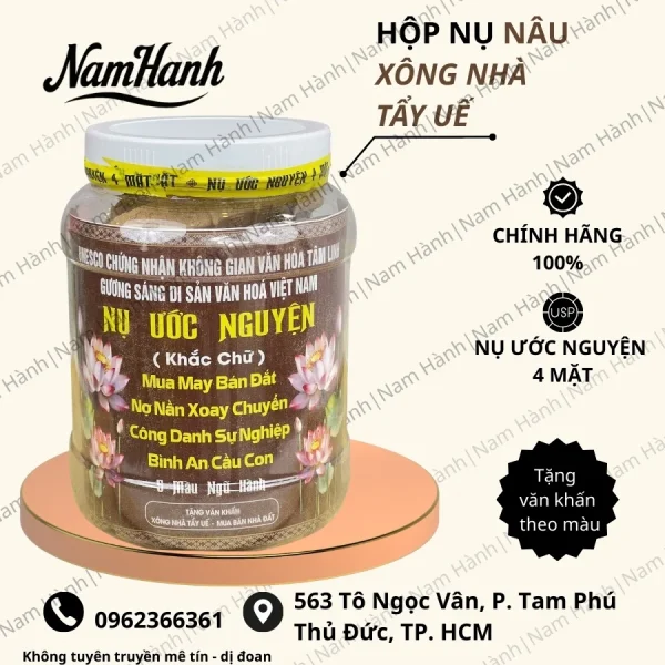 Hộp nụ xông “Nụ Ước Nguyện 4 Mặt màu Nâu” chính là lựa chọn lý tưởng cho bạn. Đây không chỉ là sản phẩm xông nhà đơn thuần, mà còn là biểu tượng của sự cầu mong bình an, may mắn và thành công.